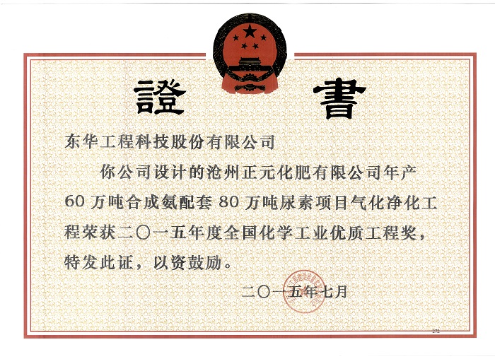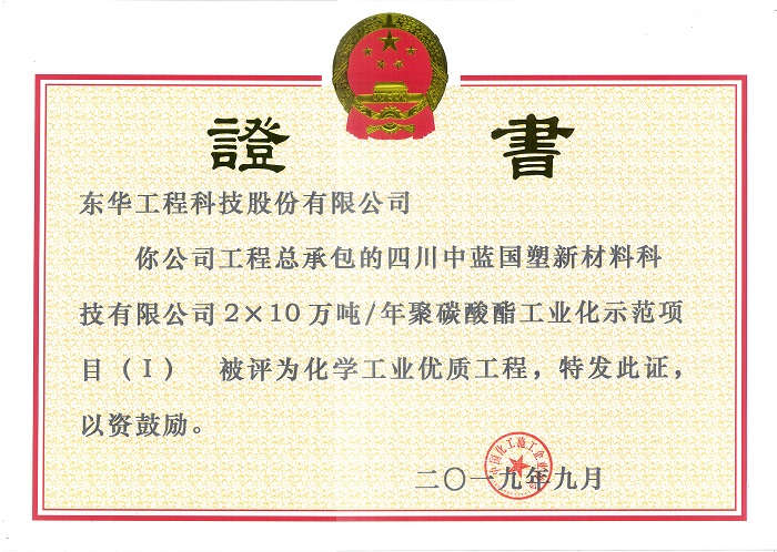 名稱:全國化學(xué)工業(yè)優(yōu)質(zhì)工程獎