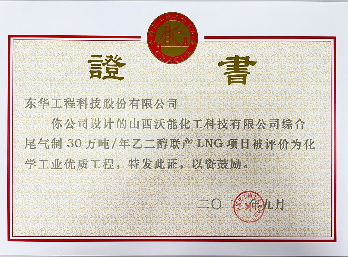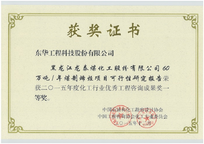 名稱:化工行業(yè)優(yōu)秀工程咨詢成果獎一等獎