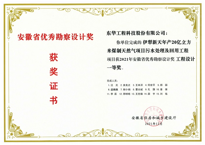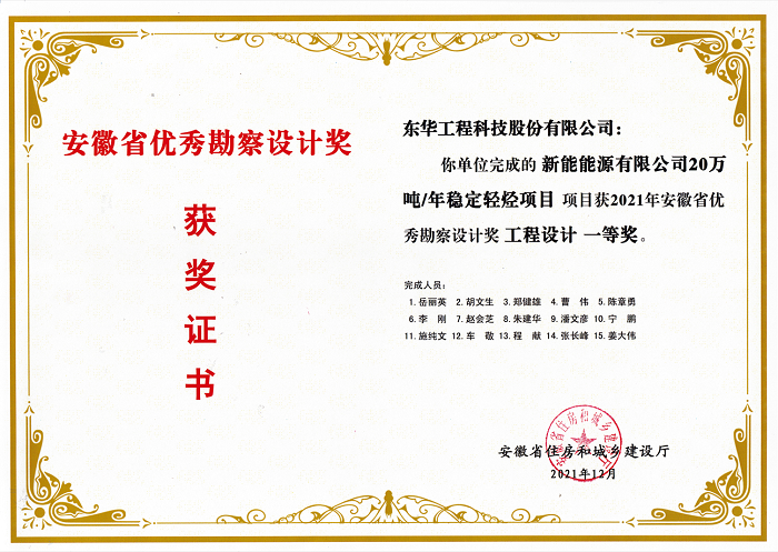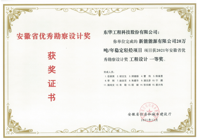 名稱:安徽省優(yōu)秀勘察設(shè)計獎工程設(shè)計一等獎