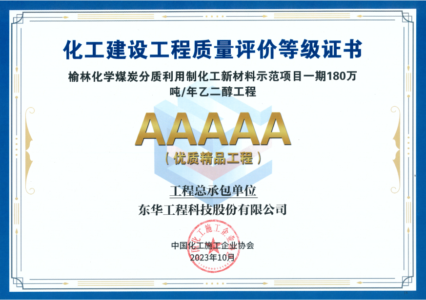 項目:榆林化學(xué)煤炭分質(zhì)利用制化工新材料示范項目一期180萬噸每年乙二醇工程