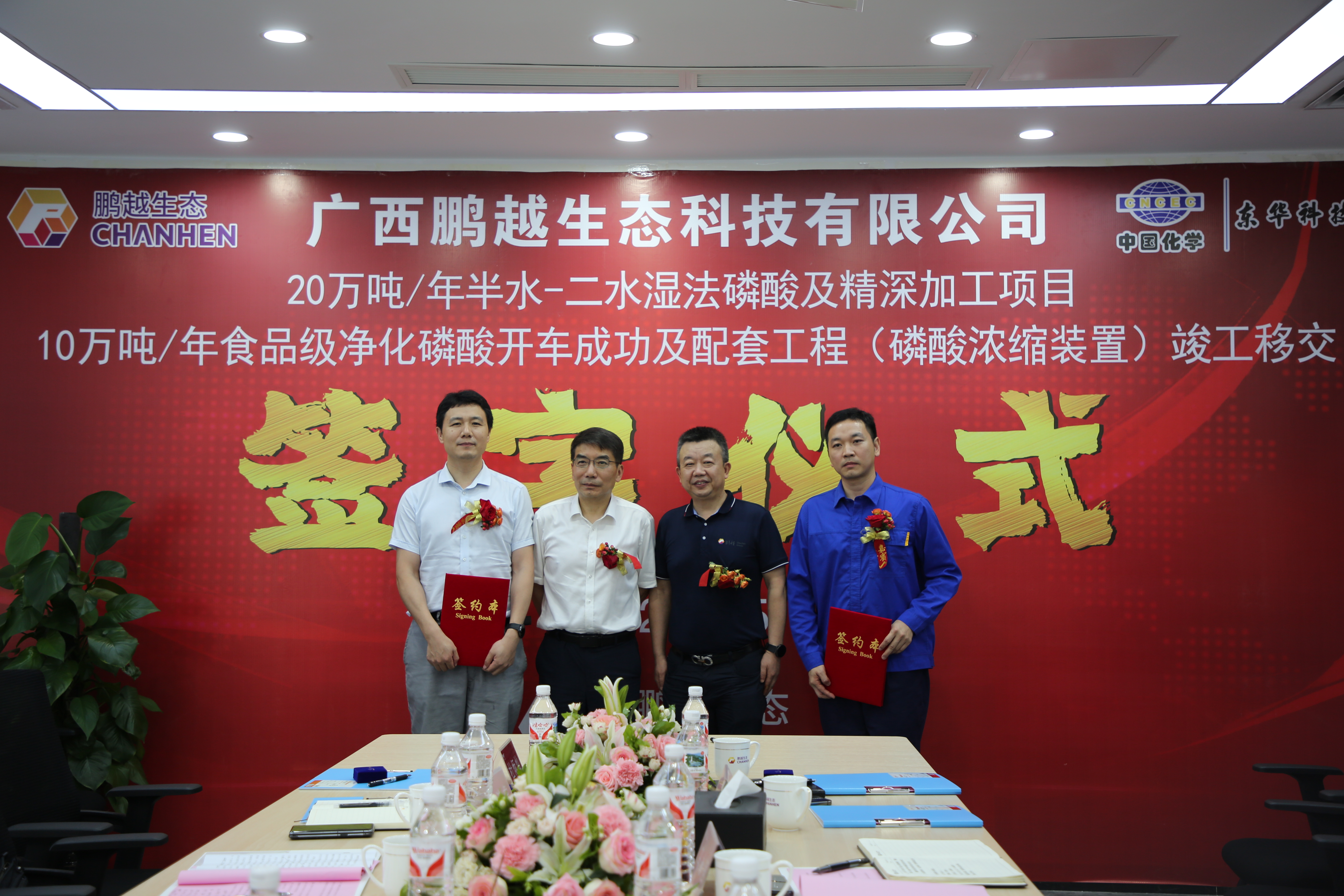 5月22日,由中國(guó)化學(xué)東華科技總承包的廣西鵬越生態(tài)科技有限公司20萬噸/年半水-二水濕法磷酸及精深加工項(xiàng)目10萬噸/年食品級(jí)凈化磷酸及配套工程(以下簡(jiǎn)稱“廣西鵬越項(xiàng)目”)舉辦了竣工移交簽字儀式,標(biāo)志著項(xiàng)目順利通過竣工驗(yàn)收。