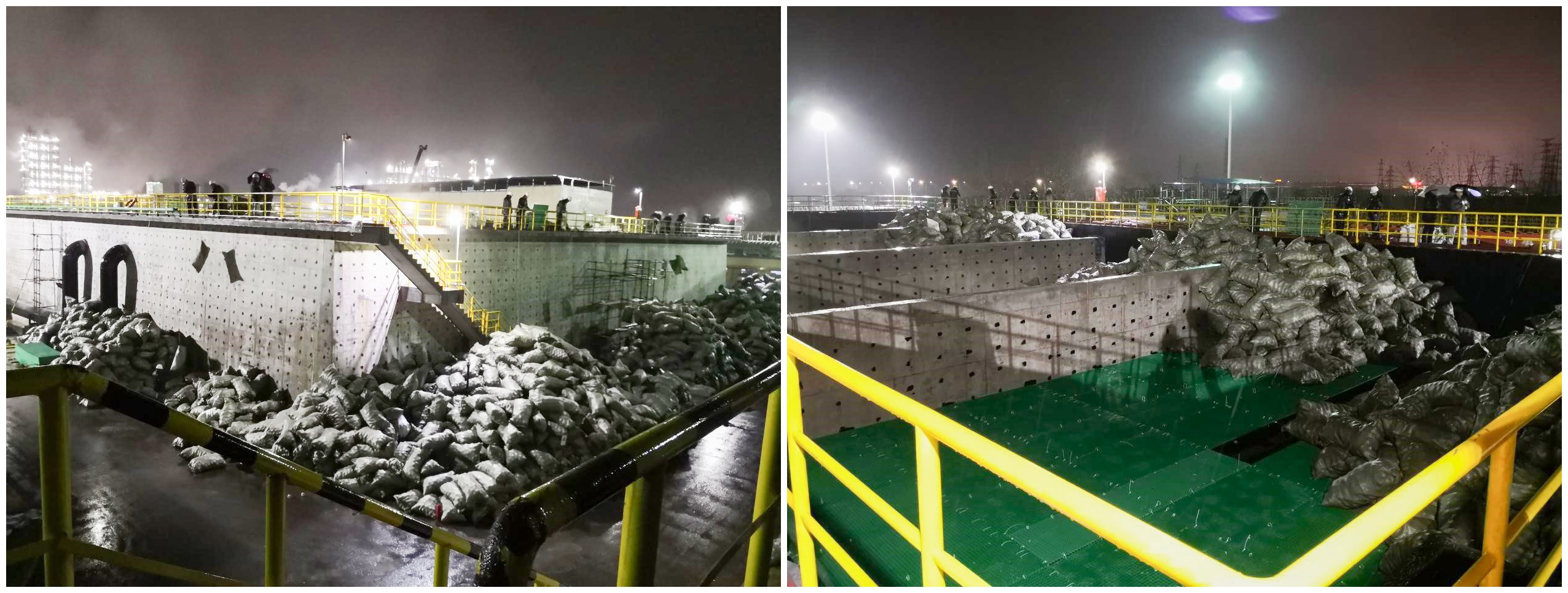 據悉,為了搶工程進度,按節點完成園區污水技改項目任務,早日解決巨化集團以及衢州高新園區日益增長的工業污水處理需求,這場項目部懸浮填料安裝專項攻堅戰,自12月21日夜發起,將持續到當月月底,直至完成任務,約10來個日夜。項目部下定決心,無論刮風下雨,勢必完成13000m3懸浮填料裝填任務。