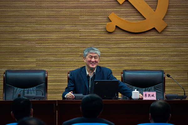 2018年2月27日下午,由公司黨委發起,黨群工作部、黨委辦公室、黨委組織部聯合組織籌辦的東華黨校大講堂在A樓報告廳正式開講。受公司黨委邀請,開國上將李克農之孫、原總參政治部大校李凱城同志專程為東華黨校大講堂第一講——《將學習宣貫黨的十九大精神引向深入:中國共產黨的管理創新》,做了一場十分精彩的報告。中共合肥市委組織部領導、公司領導、中層干部、全體黨員、員工共計500余人參加了報告會。