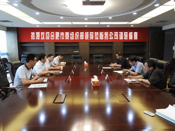 7月13日下午,合肥市委組織部副部長李衛國一行,在市委有關處室同志的陪同下,蒞臨我司開展黨組織換屆和黨費補交工作專項調研督查。公司黨委書記、董事長吳光美和黨委副書記袁經勇等同志接待了來訪領導,并在第一會議室進行了座談。