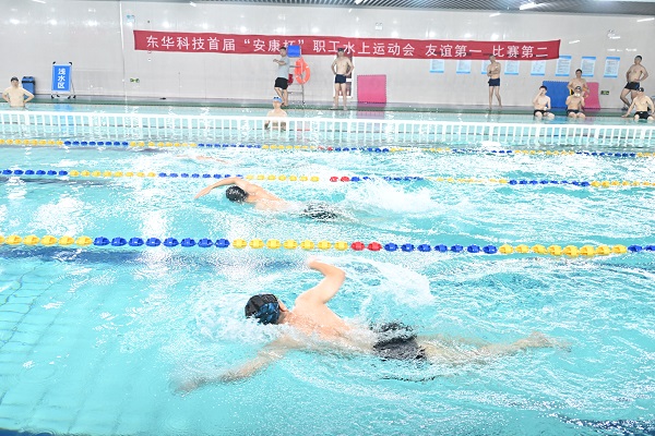 為進(jìn)一步豐富職工文化生活,為濃濃夏日帶來絲絲清涼,8月5日,東華科技“安康杯”職工水上運(yùn)動(dòng)會(huì)在合肥高新創(chuàng)新實(shí)驗(yàn)中學(xué)游泳館舉行。來自各部門的10支隊(duì)伍,共70余名職工參加比賽。