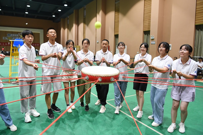 交流分享結束后,“合力搭建” “重走長征路”“同心擊鼓”等塑造團隊凝聚力的活動,給這些不常走出家門的老區學子們增強了自信和活力。